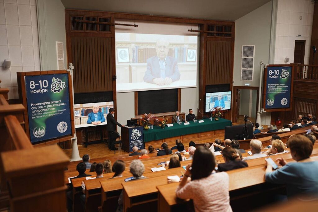 В эти дни, 8-10 ноября, на биологическом факультете проходит школа-конференция «Инженерия живых систем», приуроченная к юбилею кафедры. Поздравления кафедре и участникам школы-конференции передал ректор Московского университета, академик Виктор Антонович Садовничий. Торжественно открыл конференцию проректор МГУ, член-корреспондент РАН Андрей Анатольевич Федянин.