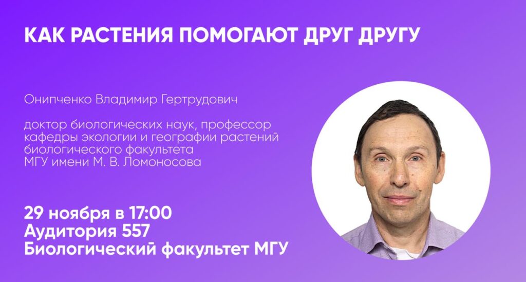 Лектор: Онипченко Владимир Гертрудович, доктор биологических наук, профессор кафедры экологии и географии растений биологического факультета МГУ имени М. В. Ломоносова
