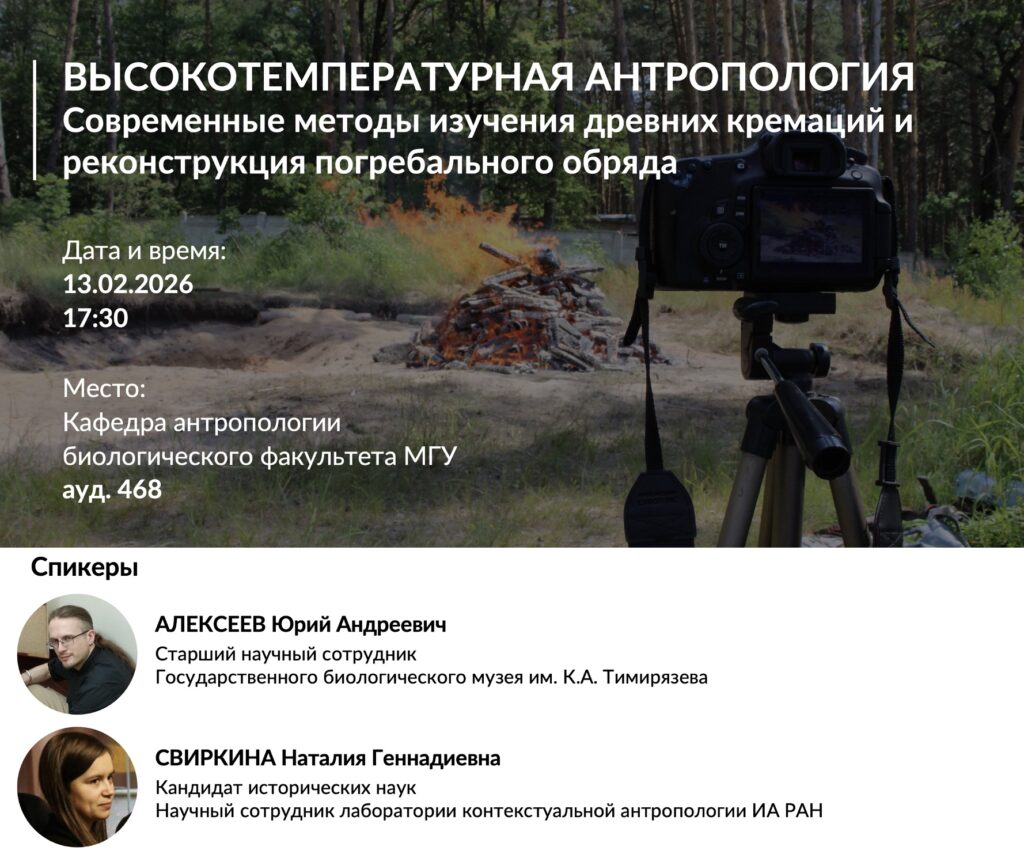 Семинар состоится 13 февраля (пятница) в 17:30, на кафедре антропологии биологического факультета МГУ в ауд. 468.