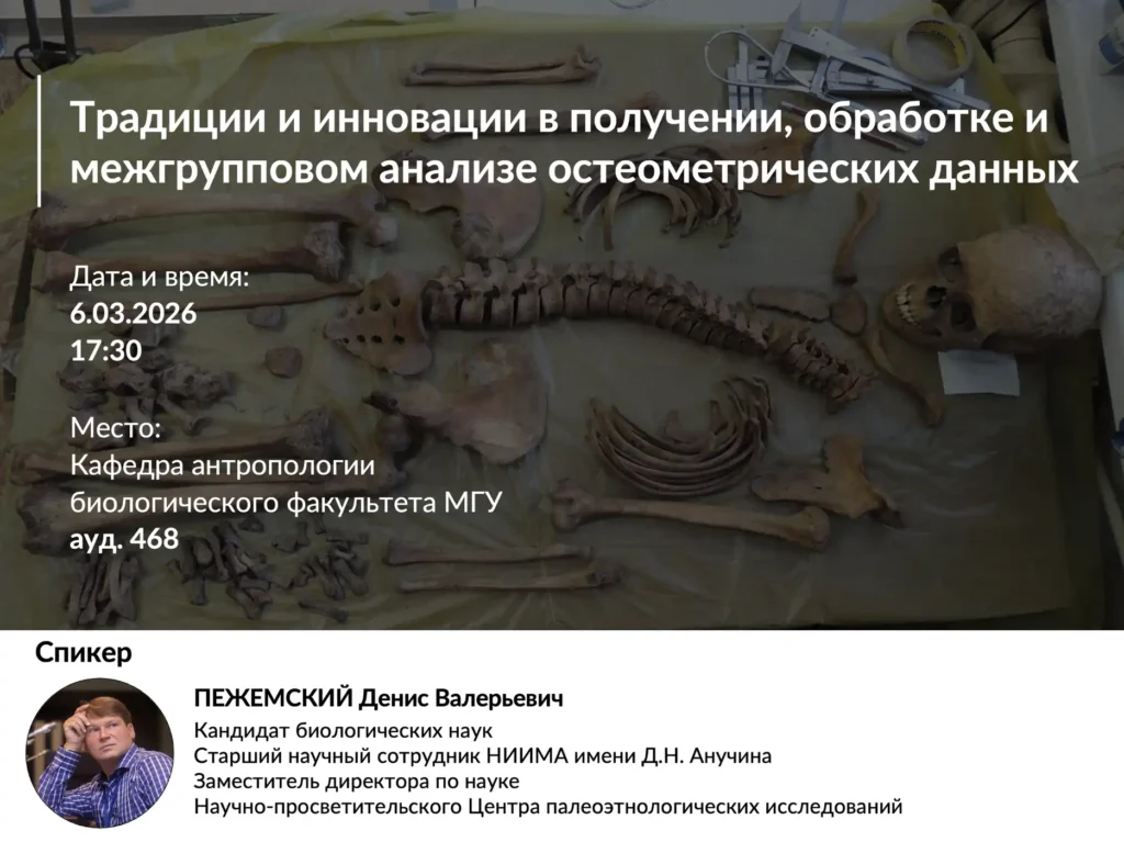 Семинар состоится 6 марта (пятница) в 17:30, на кафедре антропологии биологического факультета МГУ в ауд. 468.