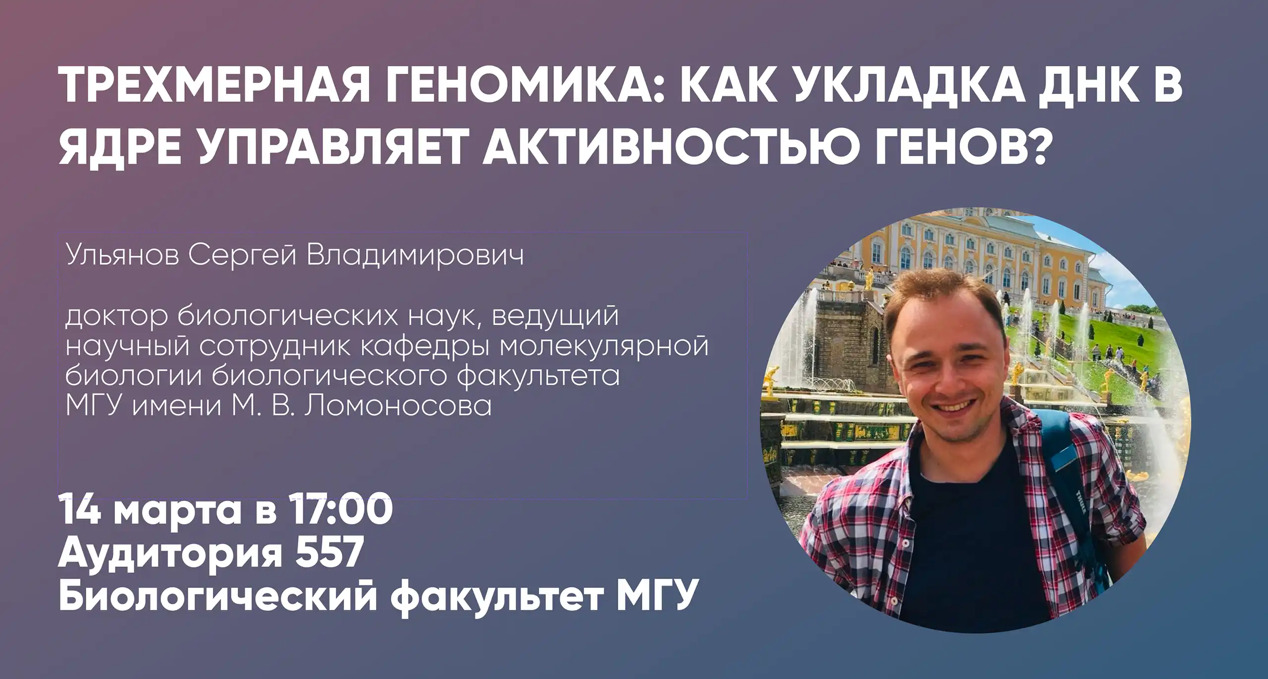 Лектор: Ульянов Сергей Владимирович, доктор биологических наук, ведущий научный сотрудник кафедры молекулярной биологии биологического факультета МГУ имени М. В. Ломоносова