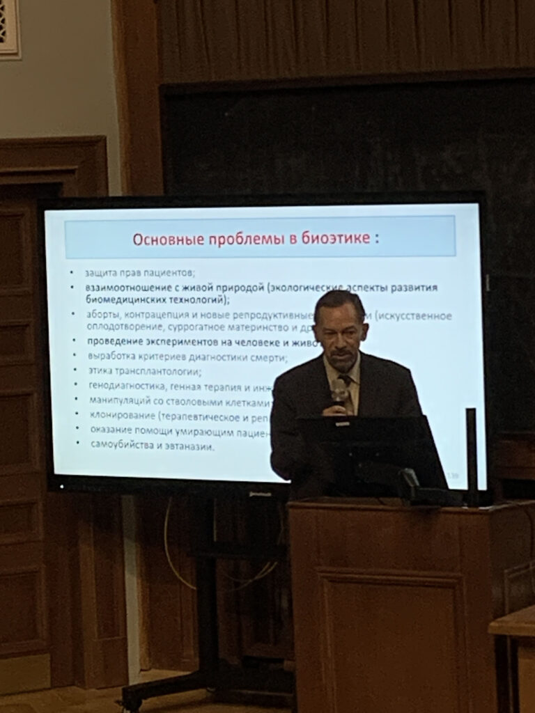 Визионерские лекции для приехавших из разных вузов коллег были прочитаны сотрудниками Биологического факультета МГУ — д.б.н., чл.-корреспондентом РАН, профессором, зав. кафедрой энтомологии А.А. Полиловым, д.б.н., руководителем сектора эволюционной цитогеронтологии А.Н. Хохловым, д.б.н., профессором, председателем Комиссии МГУ по биоэтике Н.Н. Марфениным и к.б.н., доцентом кафедры альгологии и микологии Е.Ю. Ворониной.